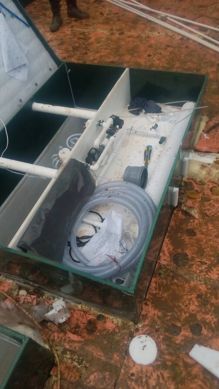 Установка имеет блок управления, а также в систему входят трубы для стоков, краны, фурнитура и кабель питания.