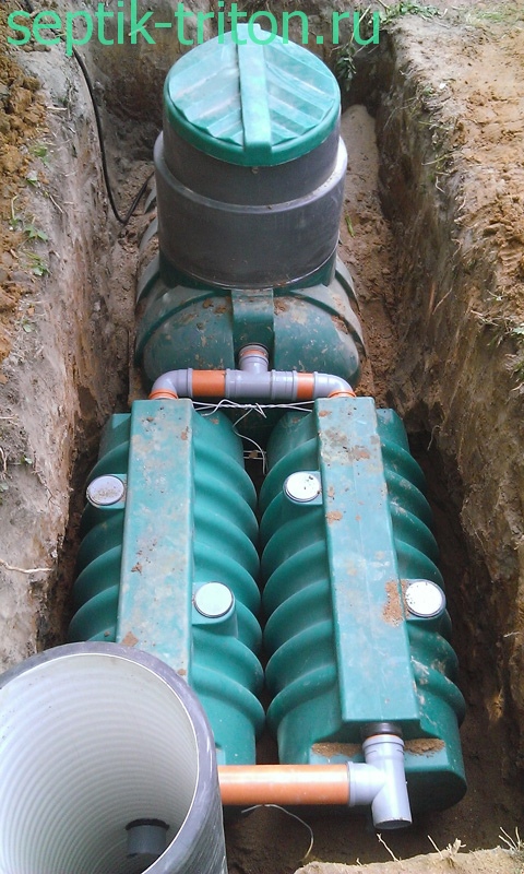 Внутри септика происходит постепенное разложение органических веществ под воздействием бактерий и микроорганизмов. В результате процесса вода очищается и становится безопасной для сброса в грунт.